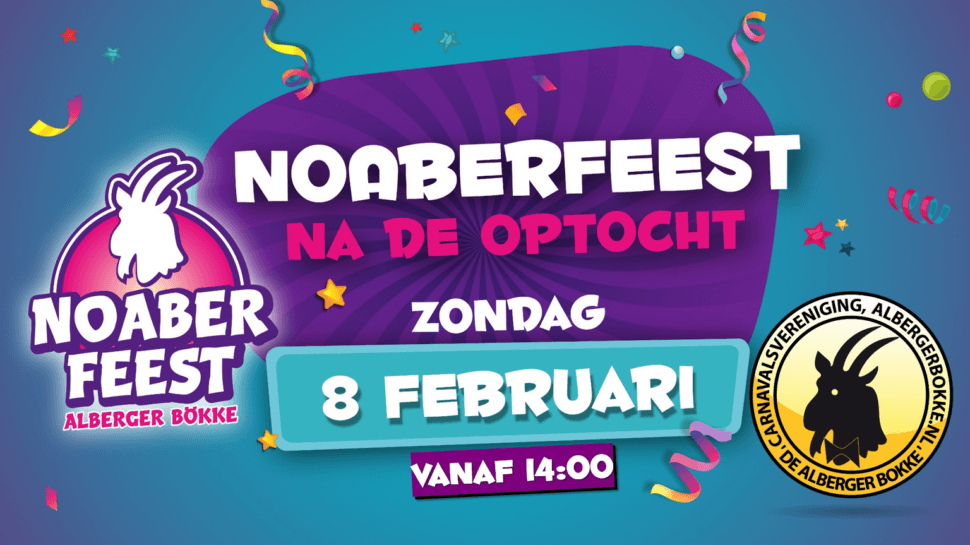Rond 18.00 uur zullen Prins Jeroen en Sik Nick de prijzen uitreiken tijdens het Noaberfeest. C.V. de Alberger Bökke stelt dit jaar wederom het fraaie bedrag van € 1.555,55 beschikbaar voor de eerste prijs bij de categorie grote wagens. De Alberger Bökke is erg blij dat dit mede door haar sponsoren mogelijk is gemaakt. Het Noaberfeest vindt plaats in de grote tent op de parkeerplaats naast Partycentrum Morshuis. Vanaf 14.00 uur zal de tent geopend zijn en de entree is gratis. Voor de kinderen is er een springkussen en gratis ranja.
