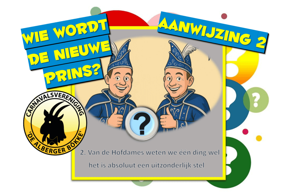 Tot aan de opkomst worden er cryptische omschrijvingen op de site >> Raad de Prins 2025-2026 – De Alberger Bökke << geplaatst. De eerste omschrijving staat onderaan dit artikel. De komende weken verschijnen er nog drie nieuwe aanwijzingen. Houd daarvoor de site van de Alberger Bökke en de social media goed in de gaten.