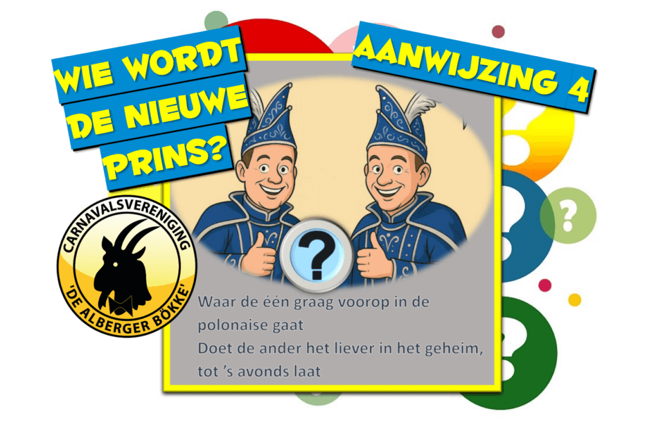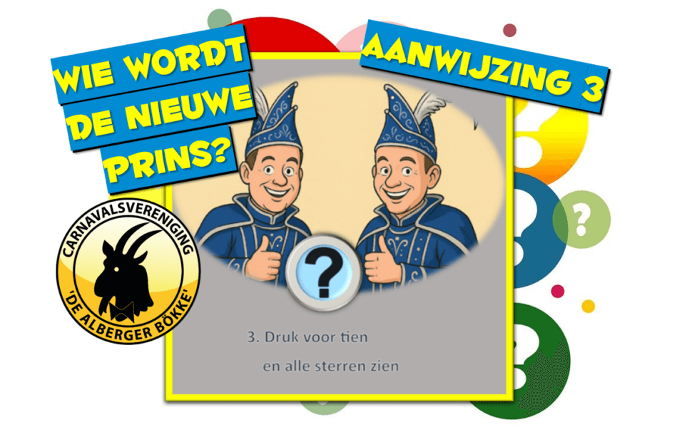 Tot aan de opkomst worden er cryptische omschrijvingen op de site >> Raad de Prins 2025-2026 – De Alberger Bökke << geplaatst. De eerste omschrijving staat onderaan dit artikel. De komende weken verschijnen er nog drie nieuwe aanwijzingen. Houd daarvoor de site van de Alberger Bökke en de social media goed in de gaten.